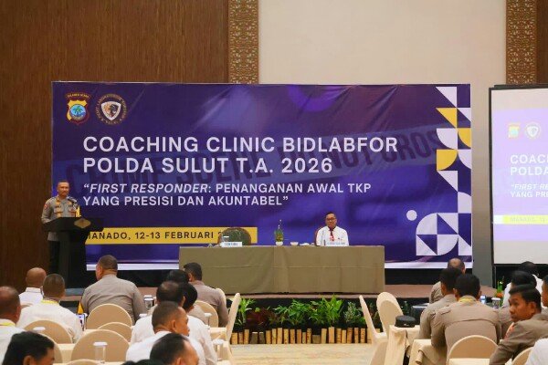 POJOKMANADO.ID – Irwasda Polda Sulut Konbes Pol Amin Litarso secara resmi membuka kegiatan Coaching Clinic Bidlabfor Polda Sulut T.A. 2026 yang diselenggarakan di Hotel Peninsula Manado pada Kamis, 12 Februari 2026.
